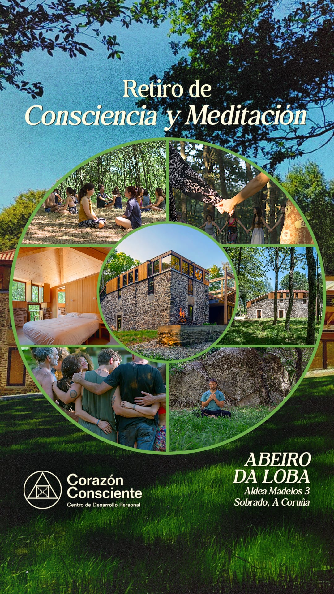 Durante tres días, en el maravilloso espacio de Abeiro da Loba (Aldea Madelos 3, Sobrado dos Monxes, A Coruña), disfrutaremos de meditaciones guiadas, talleres vivenciales, dinámicas de conexión, movimiento consciente, juegos, silencio, descanso… y una alimentación saludable en régimen de pensión completa.